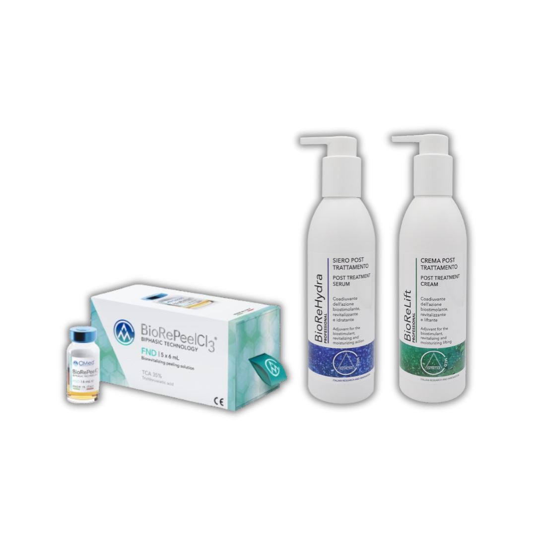 - Pack #2: BioRePeelCl3 FND (5 x 6 ml) + BioReLift (200 ml) + BioReHydra (200 ml)